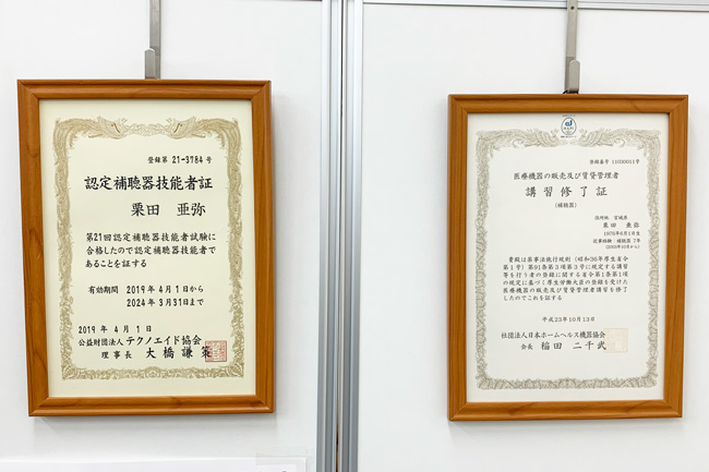 補聴器の販売や調整などに携わる人に対し、財団法人テクノエイド協会が、厳しい条件のもと、基準以上の知識や技能を持つことを認定して付与する資格です。